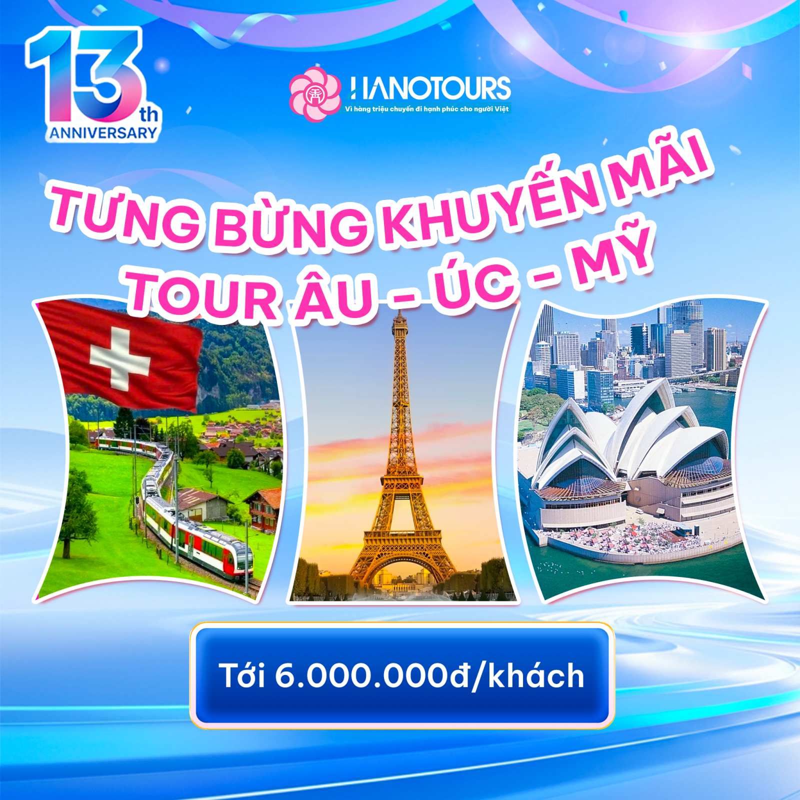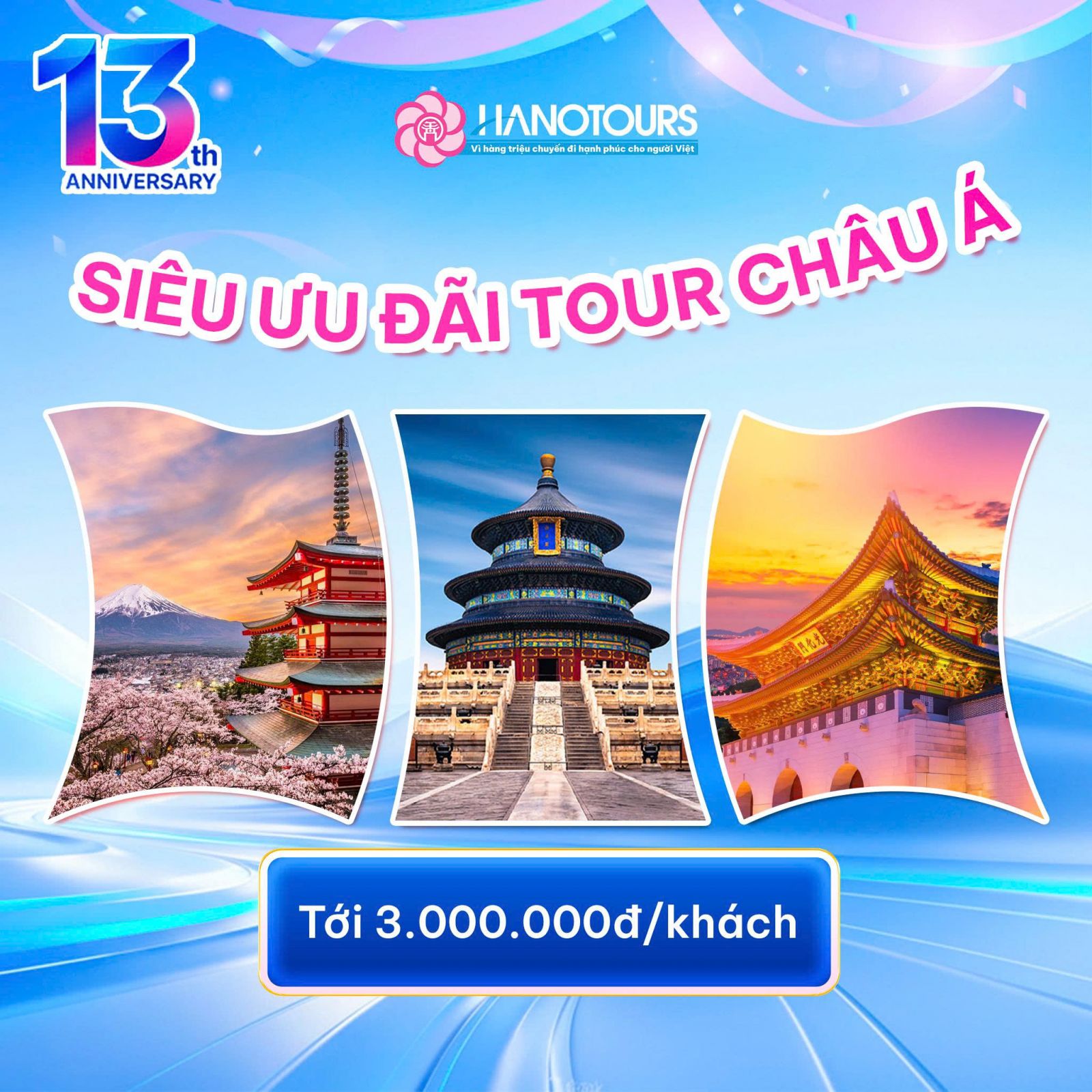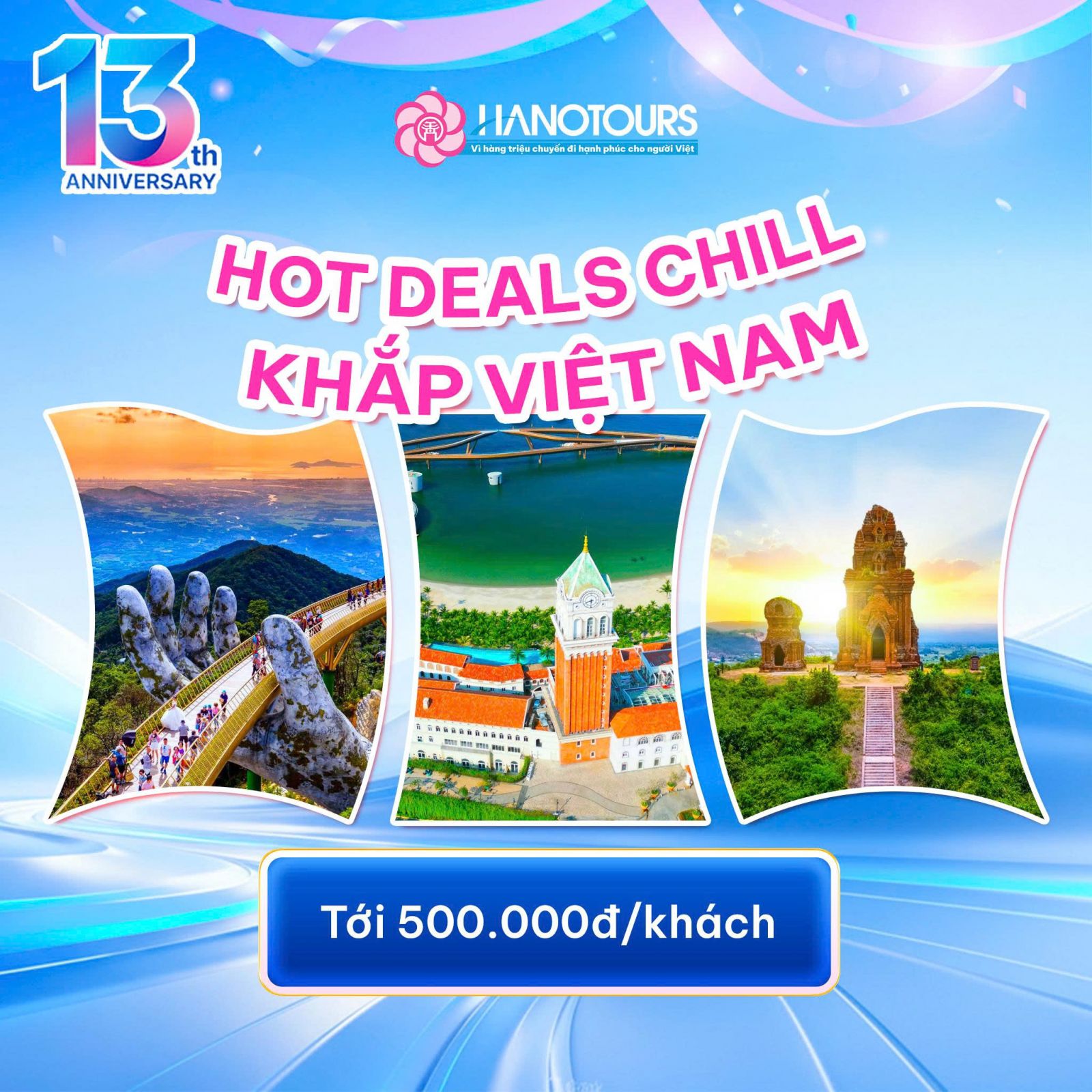Hàng ngàn ưu đãi cực khủng cho các tour du lịch nội địa, quốc tế và dịch vụ visa, được Hanotours dành tặng Quý khách hàng, trong chương trình tri ân đặc biệt: “Sinh nhật vàng – Ngàn deal hot”, kỷ niệm 13 năm thành lập (17/1/2013-17/1/2026), với tổng trị giá lên tới 5 tỷ đồng.