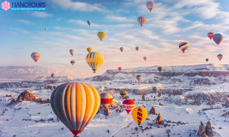Cappadocia là điểm đến nổi tiếng với khinh khí cầu bay vào bình minh, mang lại trải nghiệm tuyệt vời. Du khách có thể khám phá thung lũng đá, các hang động lịch sử và thưởng thức cảnh sắc thiên nhiên hùng vĩ. Lưu ý đặt tour khinh khí cầu trước để tránh hết chỗ và chọn giờ bay hợp lý để tận hưởng bình minh.