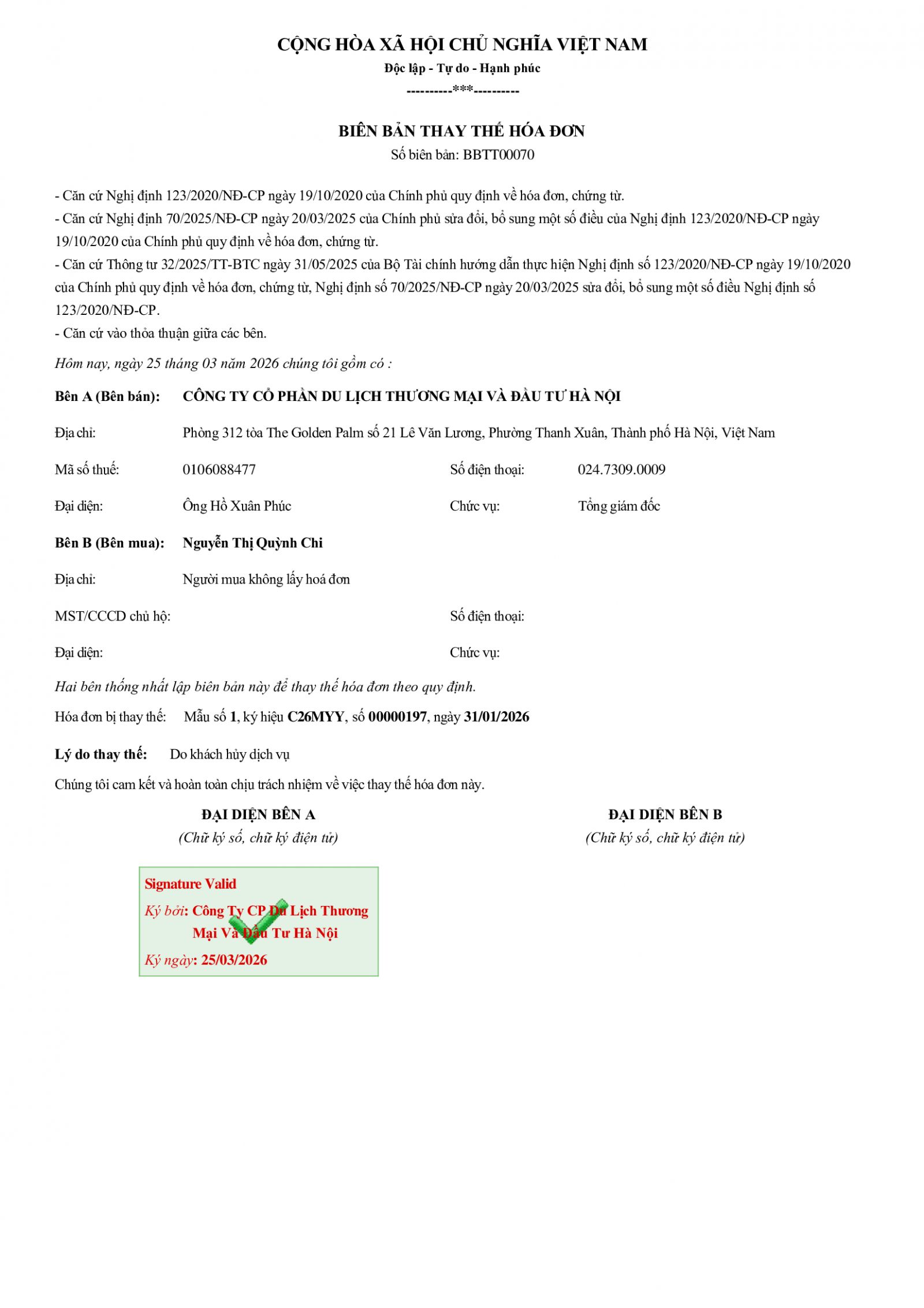 Thông báo thay thế hóa đơn 00000197