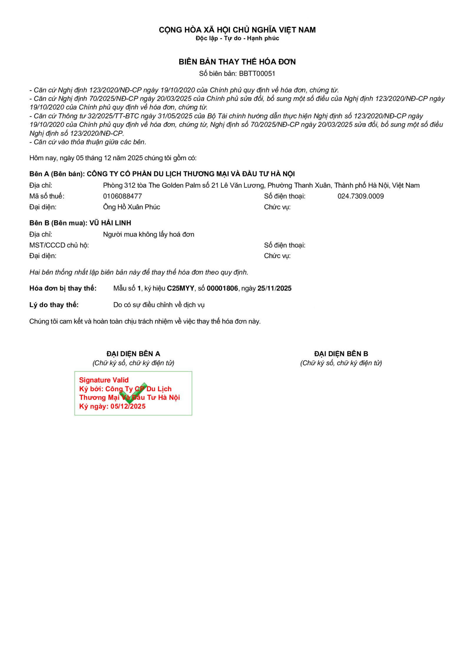 CÔNG TY CỔ PHẦN DU LỊCH THƯƠNG MẠI VÀ ĐẦU TƯ HÀ NỘI