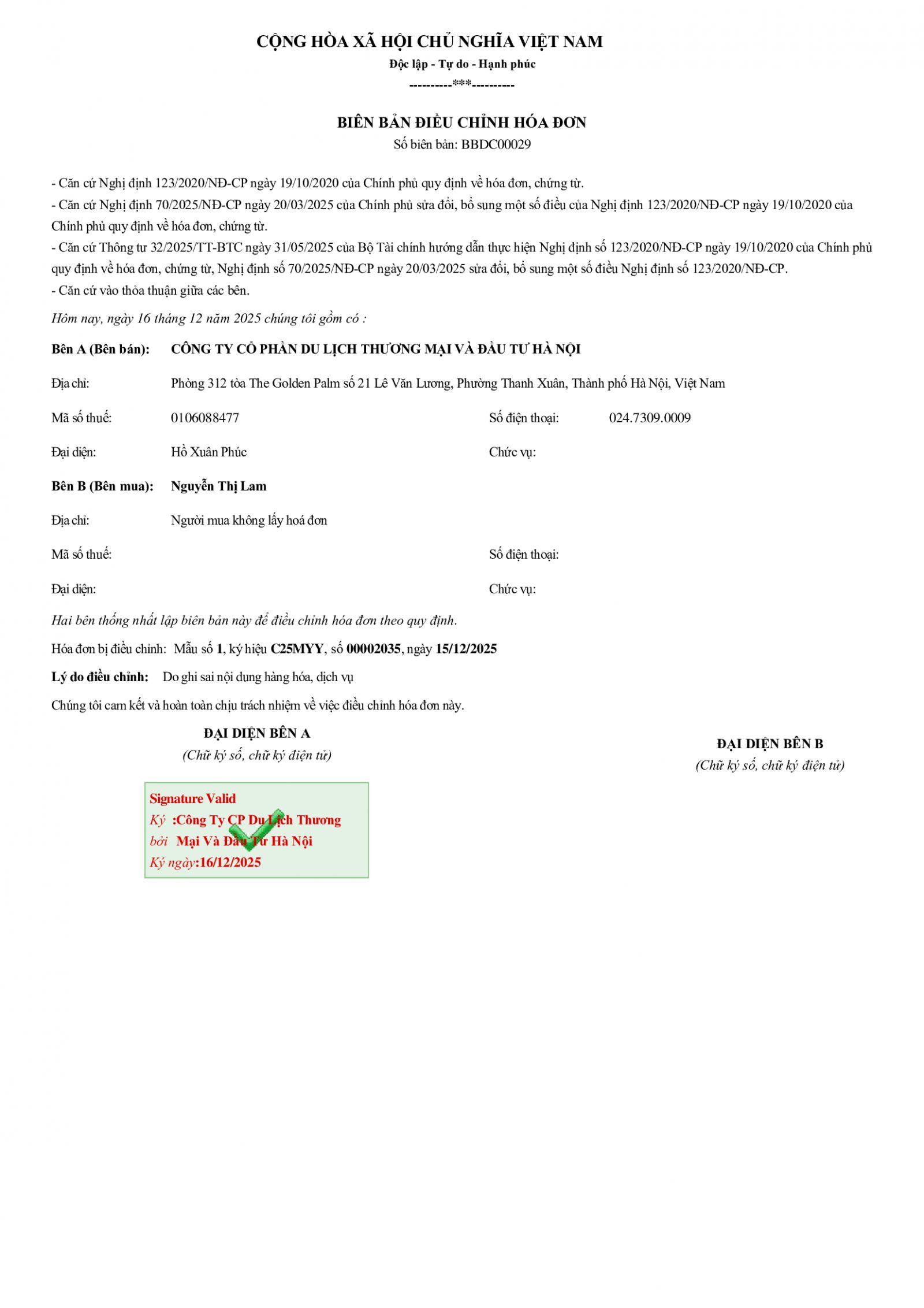 CÔNG TY CỔ PHẦN DU LỊCH THƯƠNG MẠI VÀ ĐẦU TƯ HÀ NỘI
