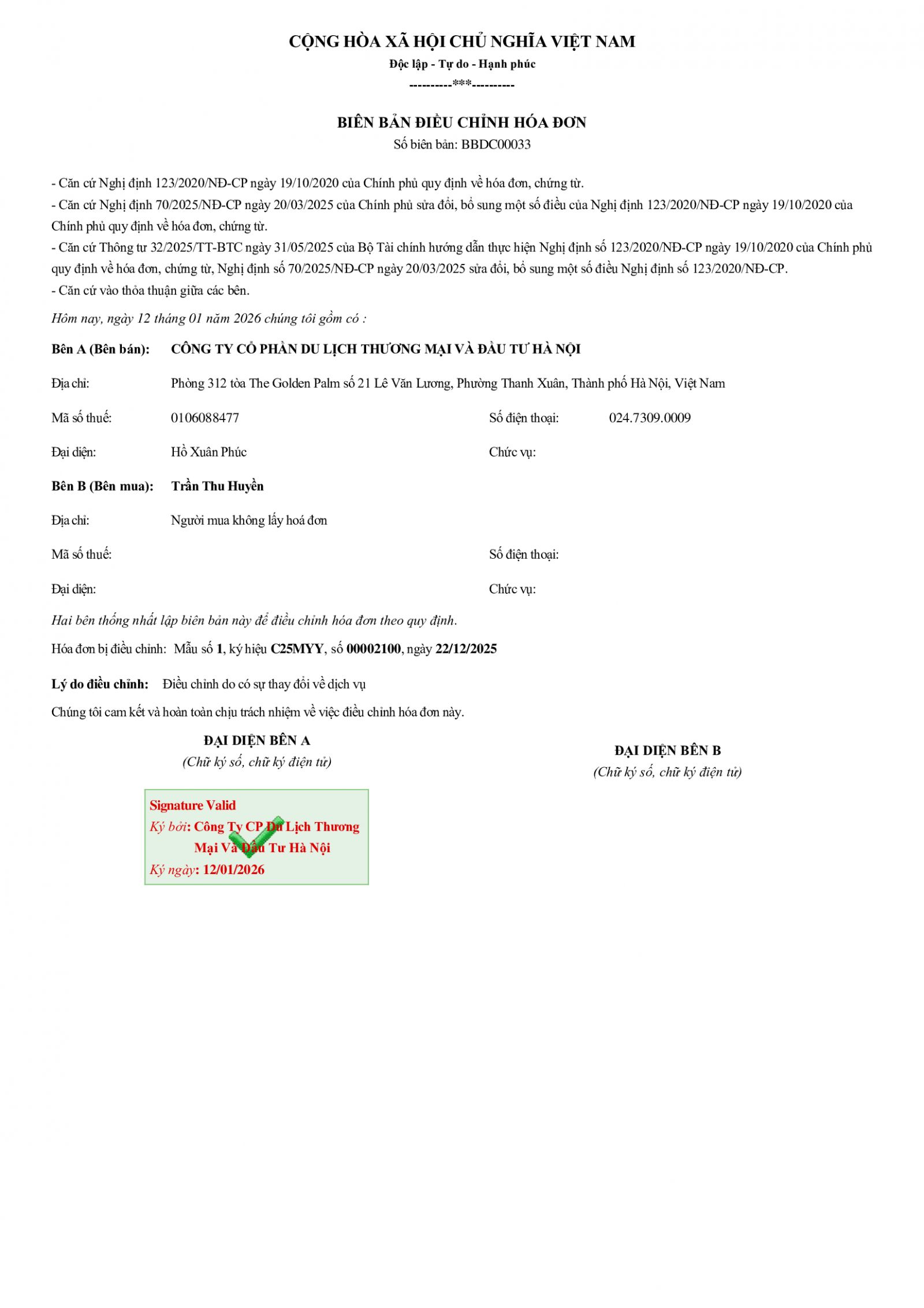 CÔNG TY CỔ PHẦN DU LỊCH THƯƠNG MẠI VÀ ĐẦU TƯ HÀ NỘI